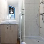 Der er separat toilet og en bruser på badeværelset.